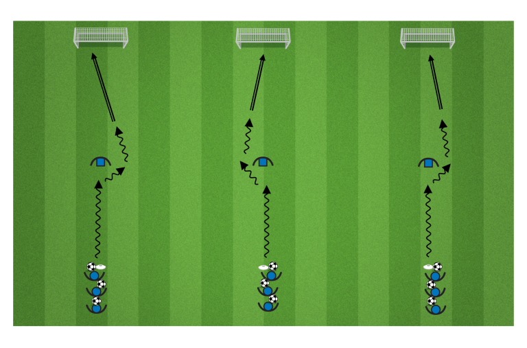 Autot (pelaajat) ajavat kohti liikennepoliisia, joka näyttää kädellään kummalta puolelta auton tulee ohittaa. Tämän jälkeen pelaaja kuljettaa sallitulta puolelta ohitse ja laukaisee pallon maaliin. Jokainen hakee oman pallon ja palaa takaisin jonoon.
